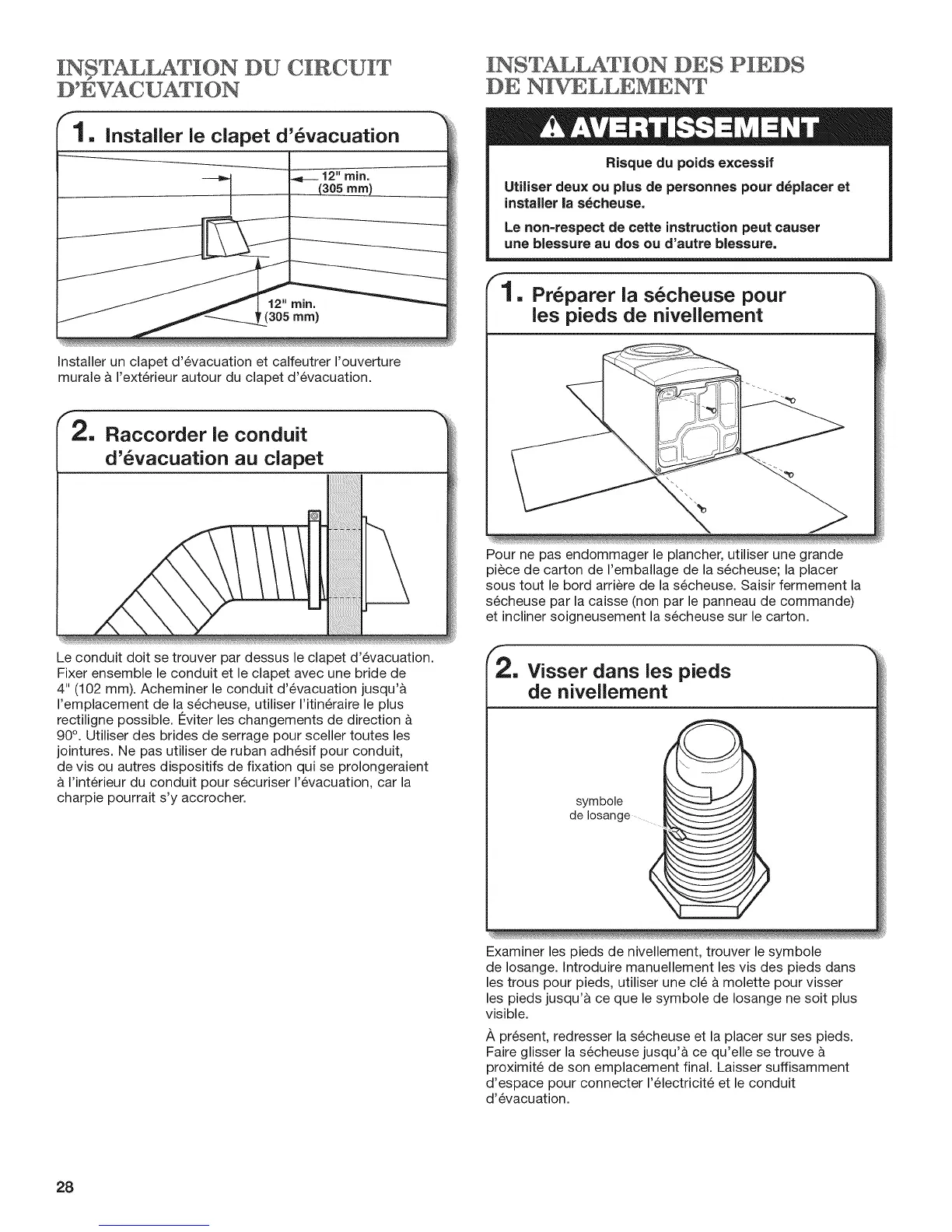 4" (102 mm). Acheminer le conduit d'6vacuation jusqu'a