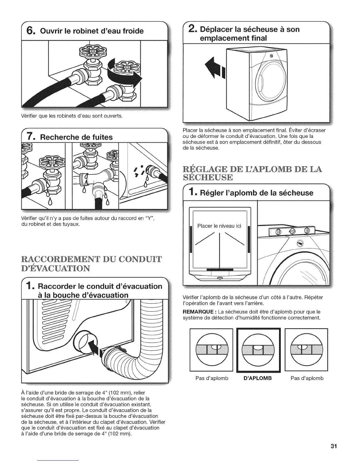 Placer la s6cheuse a son emplacement final. Eviter d'6craser