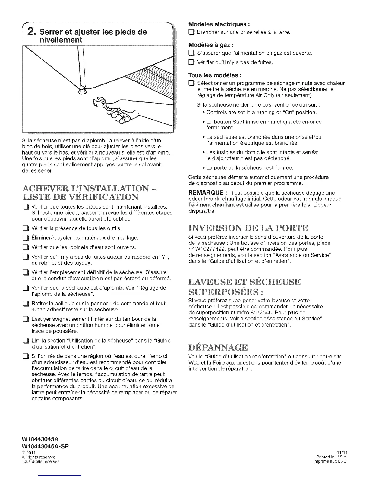 V6rifier que la s6cheuse est d'aplomb. Voir "R6glage de