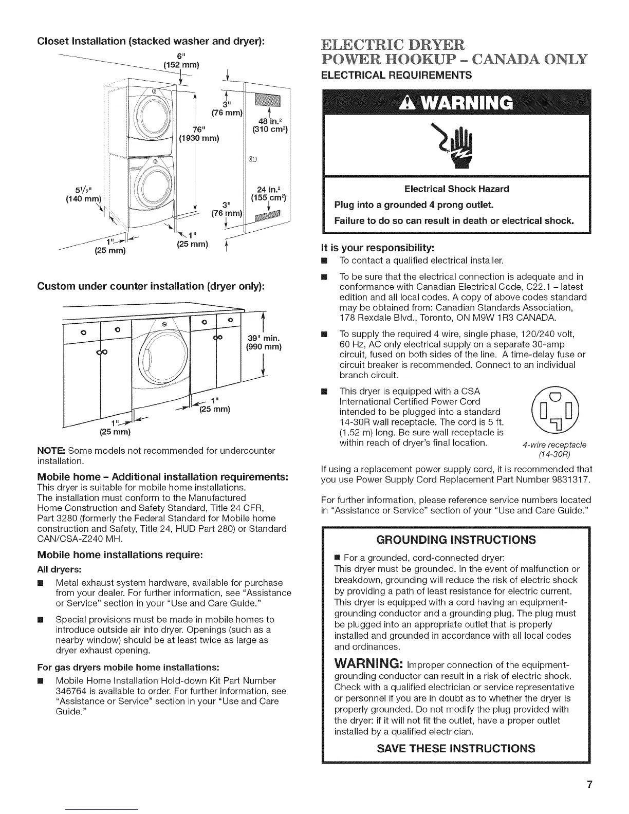 This dryer is suitable for mobile home installations.