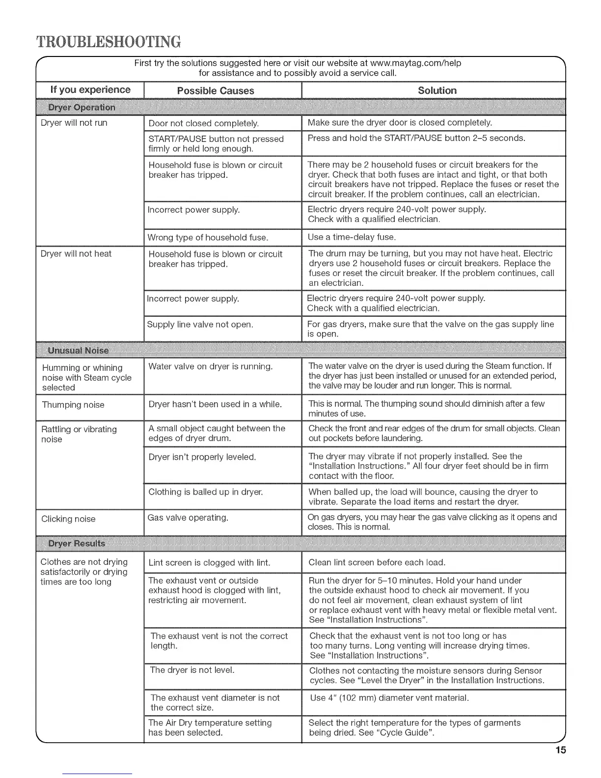 f First try the solutions suggested here or visit our website at www.maytag.com/help -_