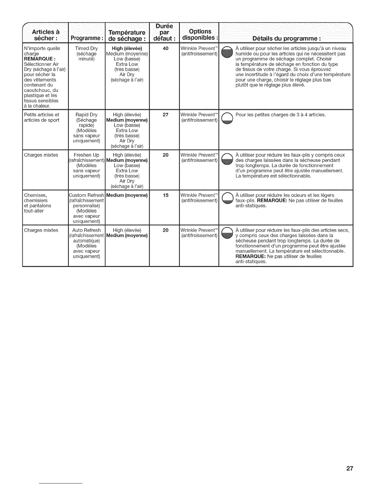 Wrinkle Prevent'M il_ ]k utiliser pour s6cher les articles jusqu'& un niveau