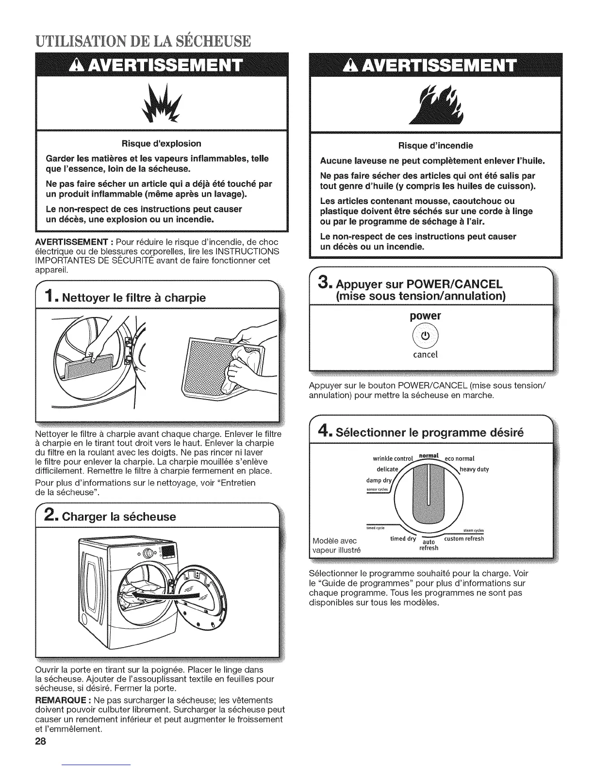 REMARQUE : Ne pas surcharger la s6cheuse; les v6tements