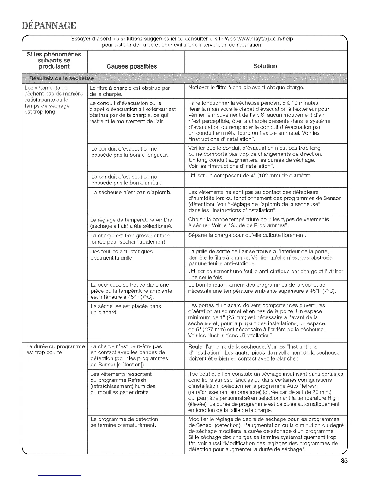 Essayer d'abord les solutions sugg6r6es ici ou consulter le site Web www.maytag.com/help