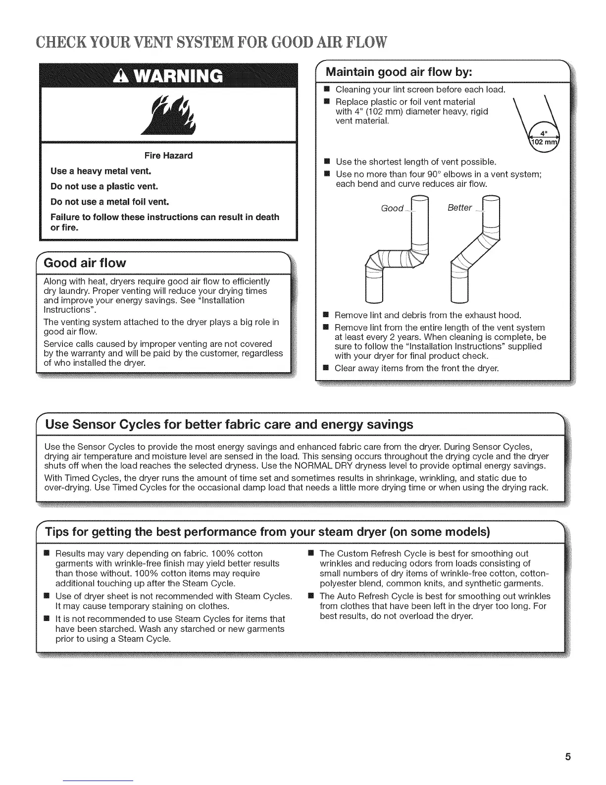 Use the Sensor Cycles to provide the most energy savings and enhanced fabric care from the dryer. During Sensor Cycles,