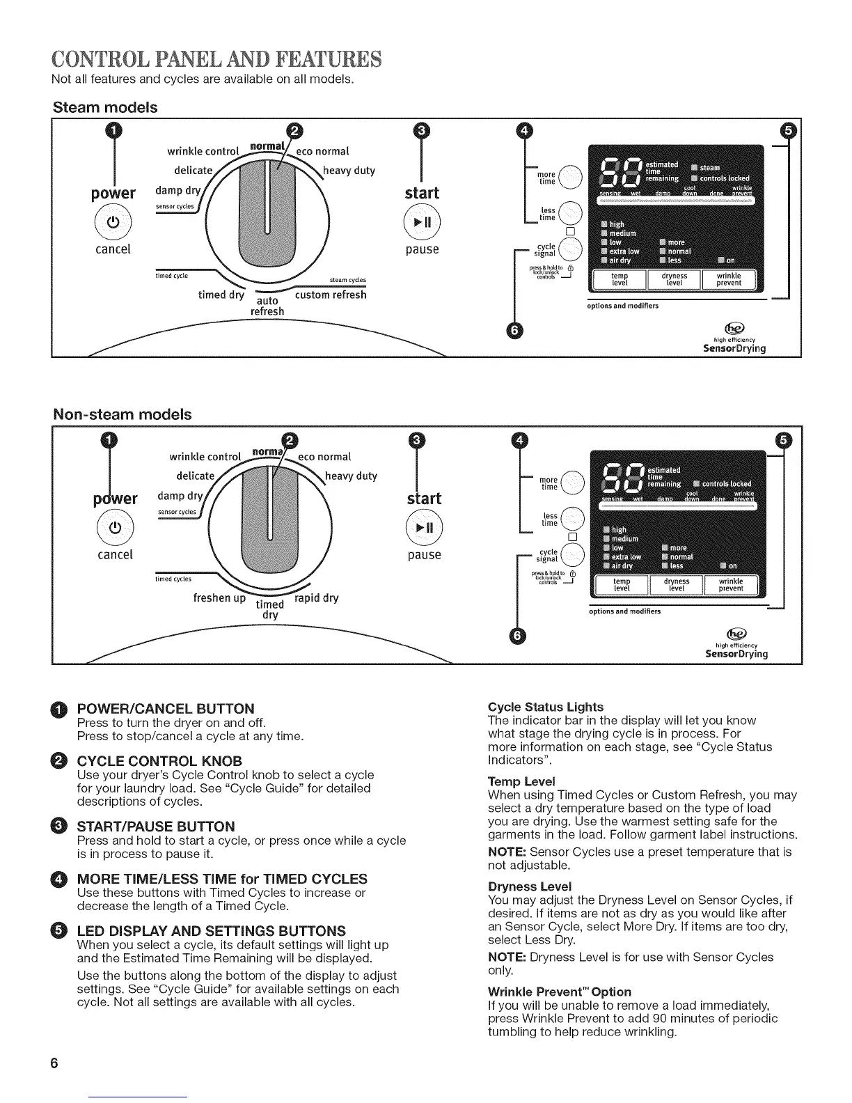 NOTE: Dryness Level is for use with Sensor Cycles