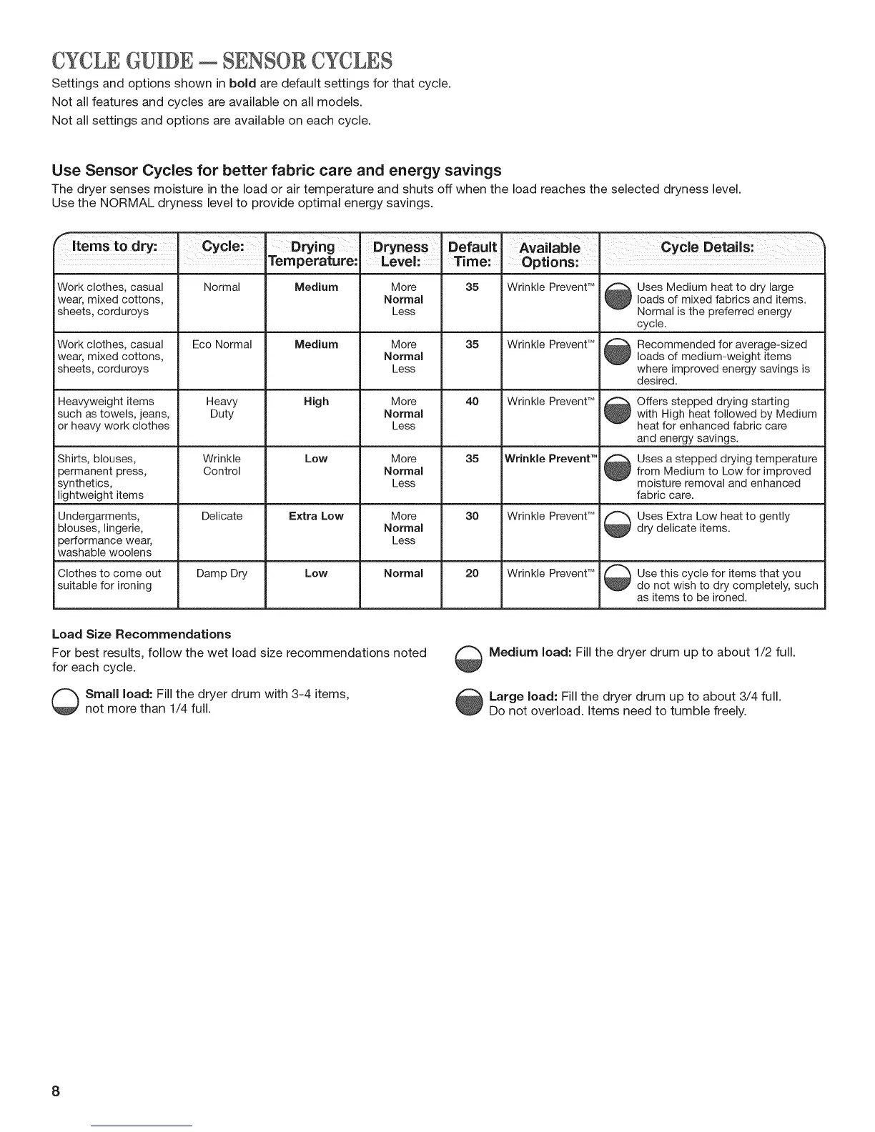 Load Size Recommendations