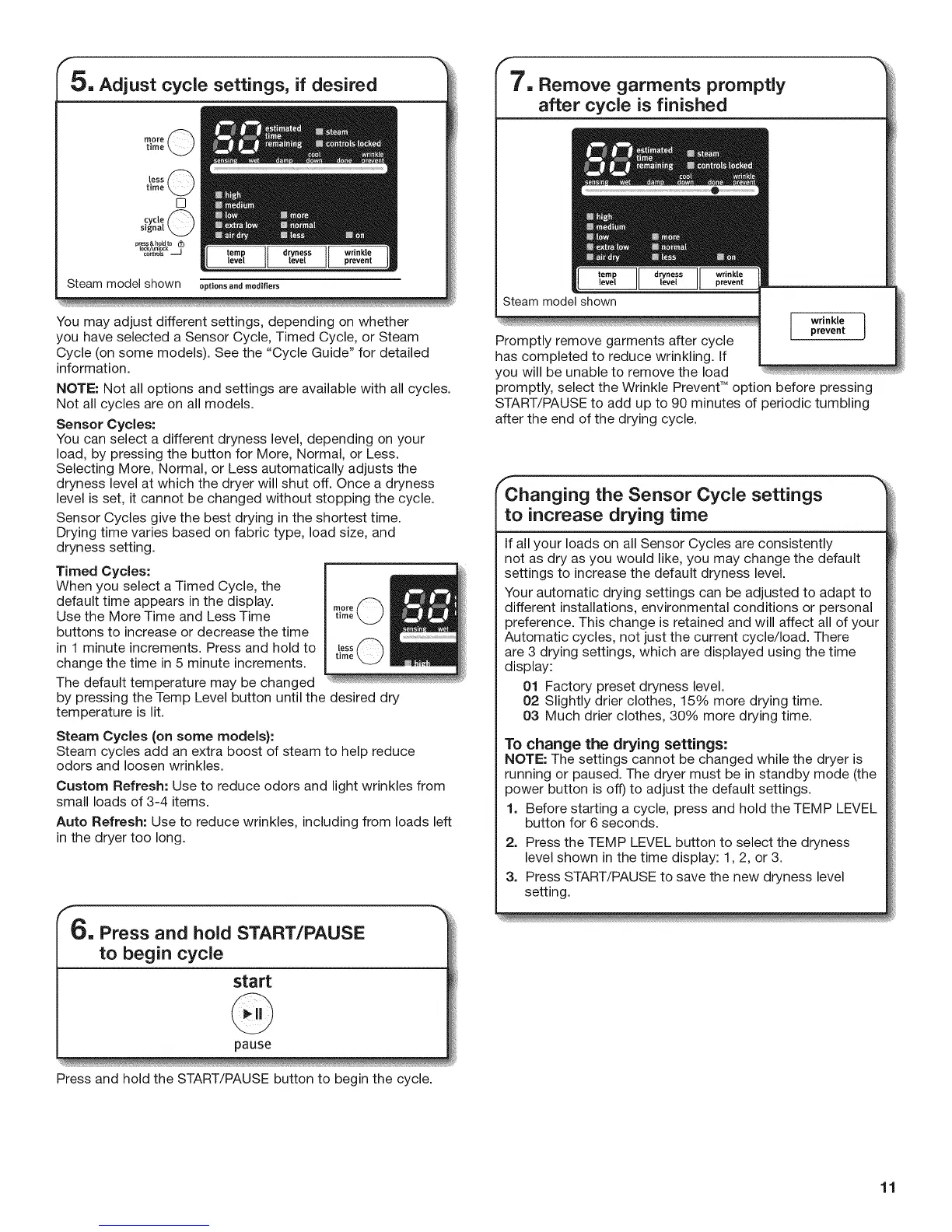 Cycle (on some models). See the "Cycle Guide" for detailed