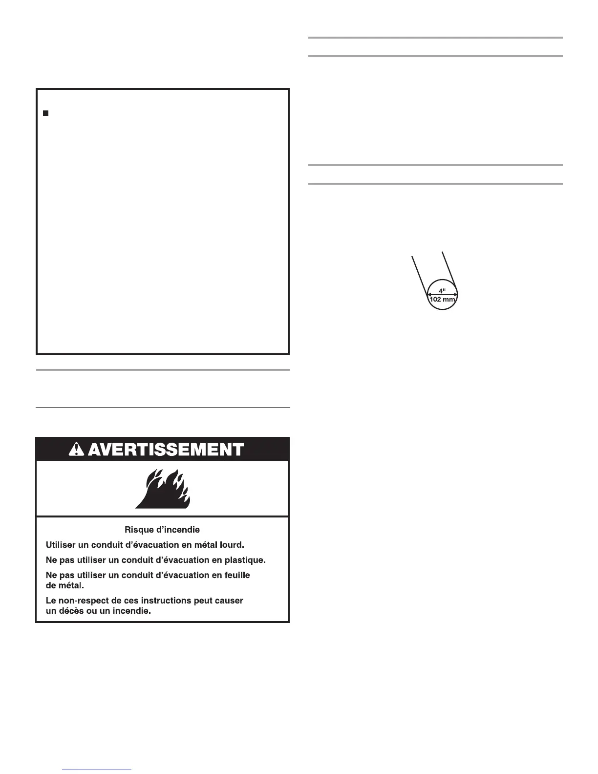 ■ Utiliser un conduit d’évacuation en métal lourd de 4" (102 mm)