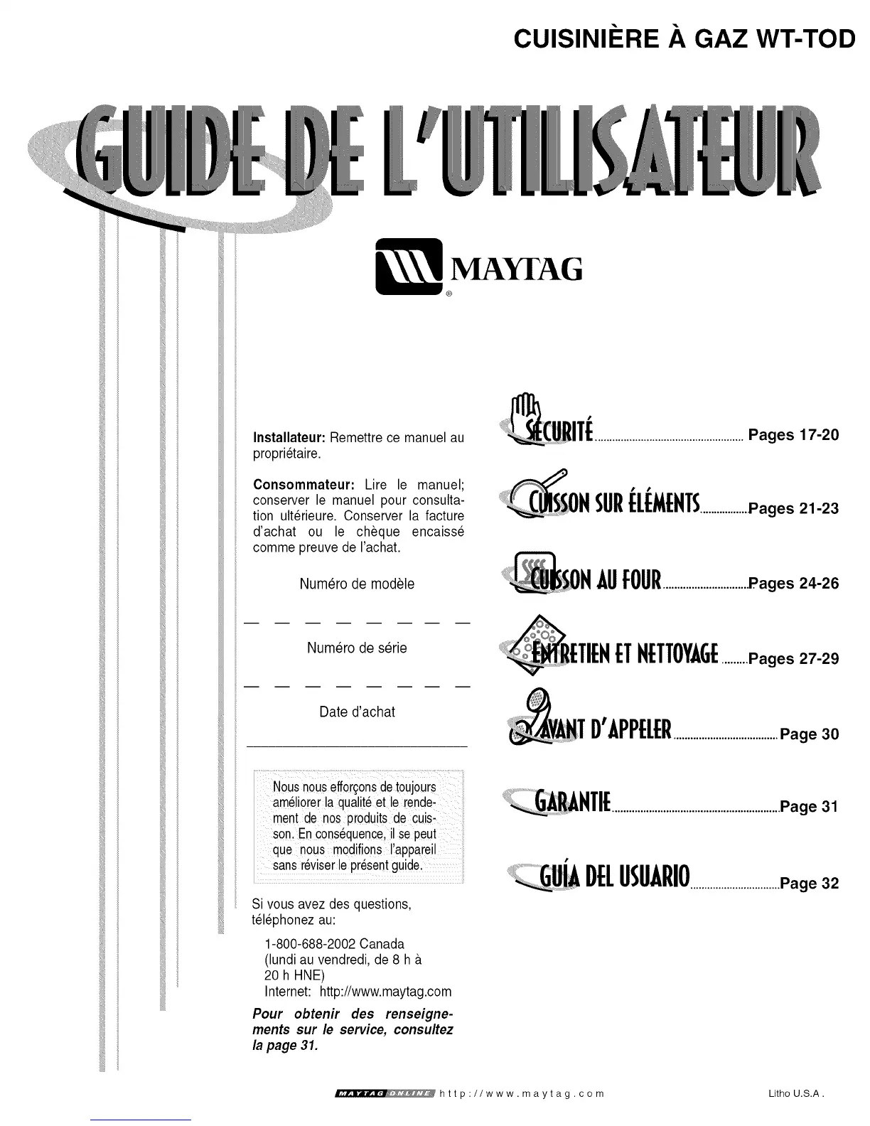 ...... : .... http://www.maytag.co m Litho U.S.A.