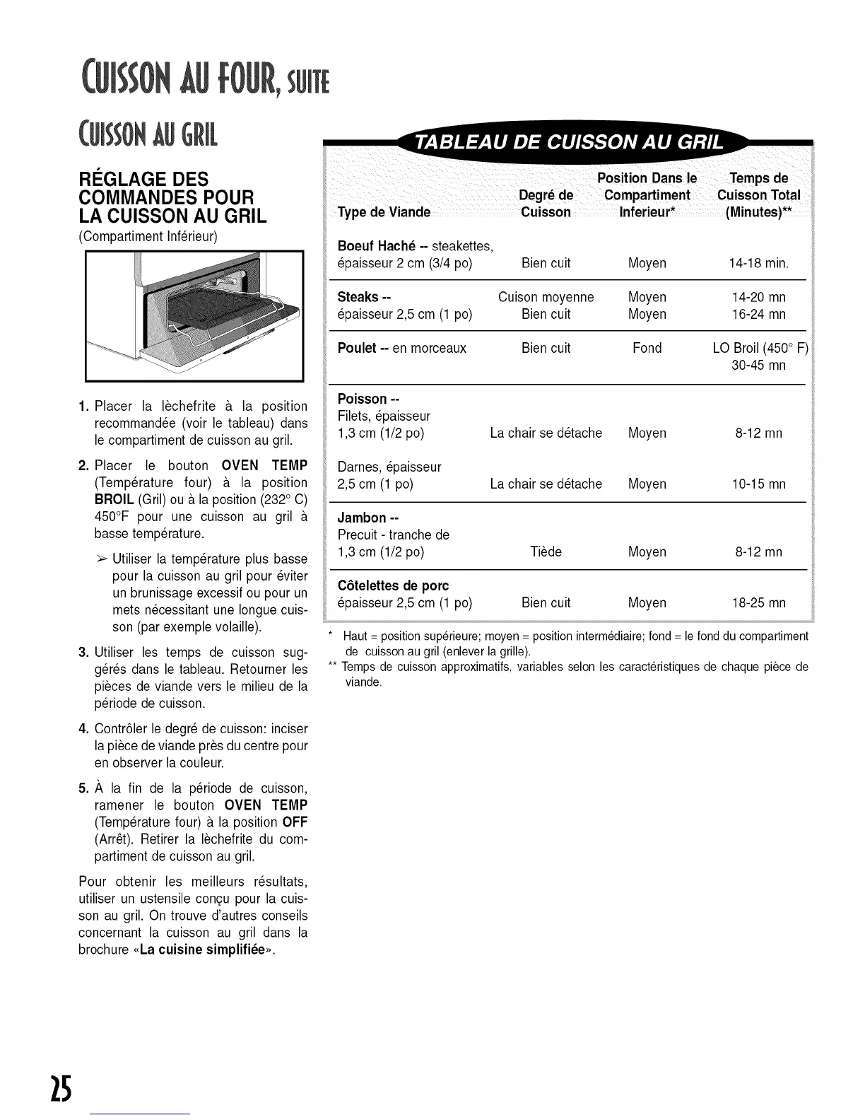 Bien cuit Fond LO Broil (450° F)
