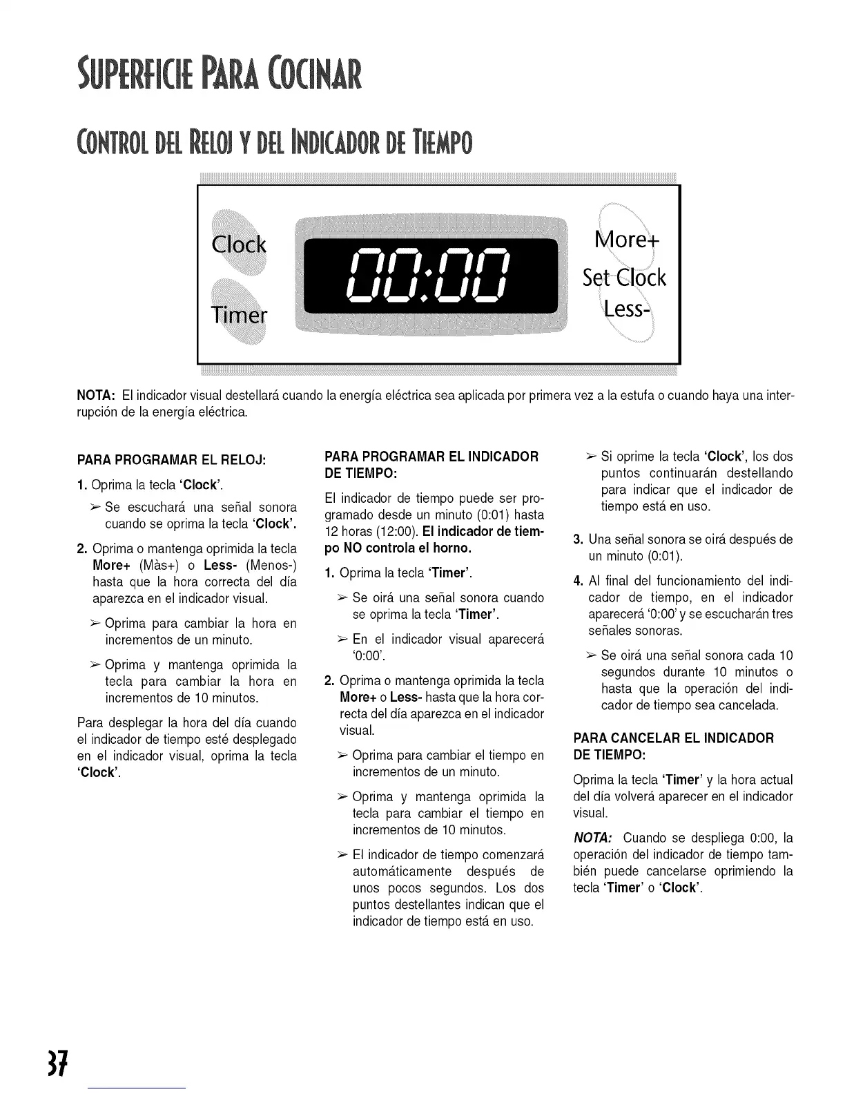 NOTA: El indicadorvisual destellar&cuando la energia el_ctrica sea aplicada por primera vez a la estufa o cuando haya una inter-