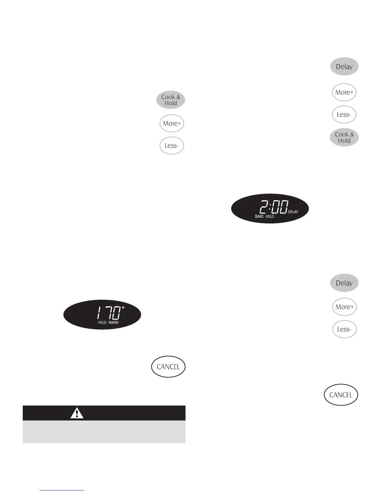 • The Delay time, “DELAY”, “BAKE” and “HOLD” light in