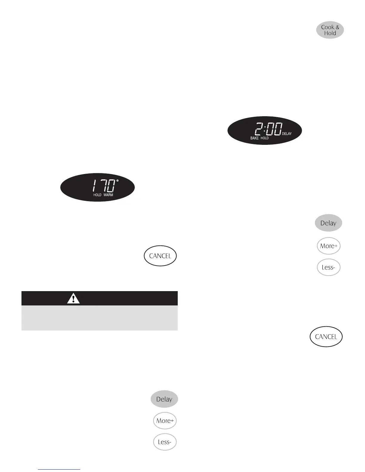 • La durée d’attente, les mots DELAY, BAKE et HOLD s’allument