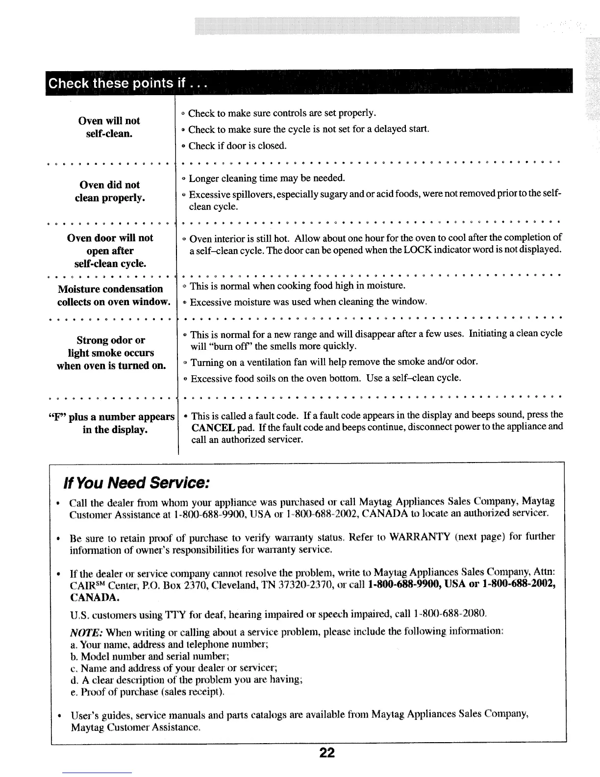 Maytag MGR5770 - Oven Troubleshooting and Service; Oven Self-Clean and Operational Issues; If You Need Service