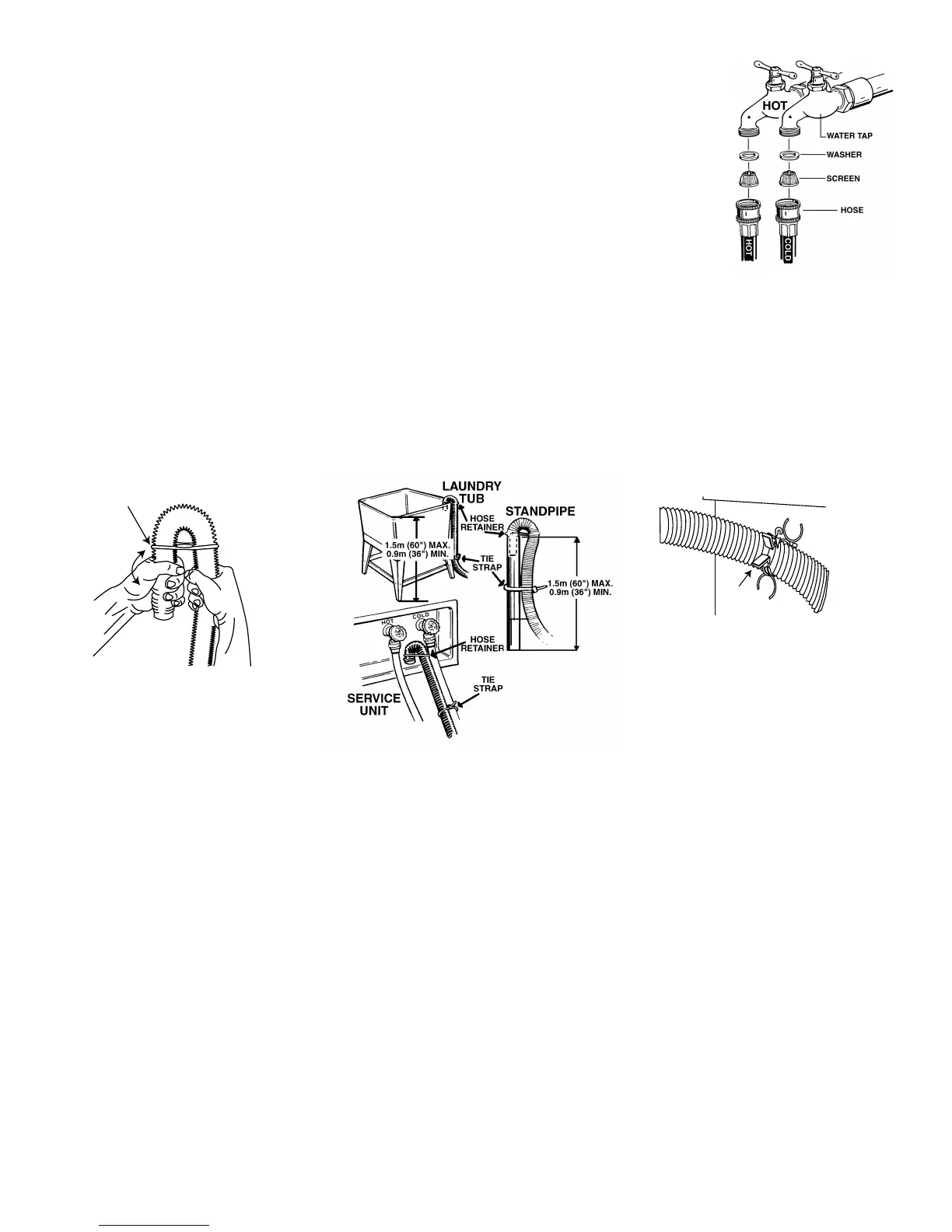 drain hose should be routed through the clip to raise the hose to the proper height. Standpipe must be