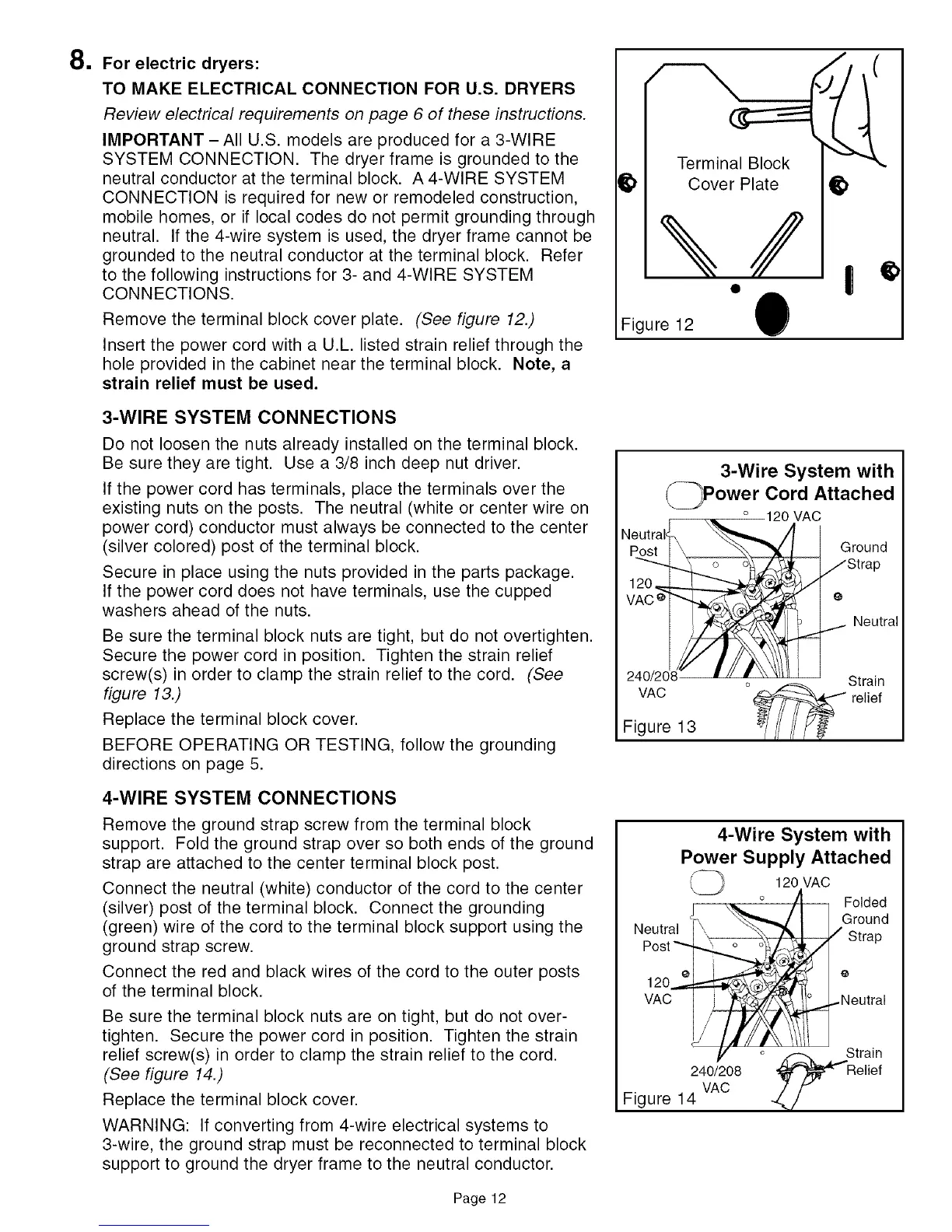 neutral. If the 4-wire system is used, the dryer frame cannot be