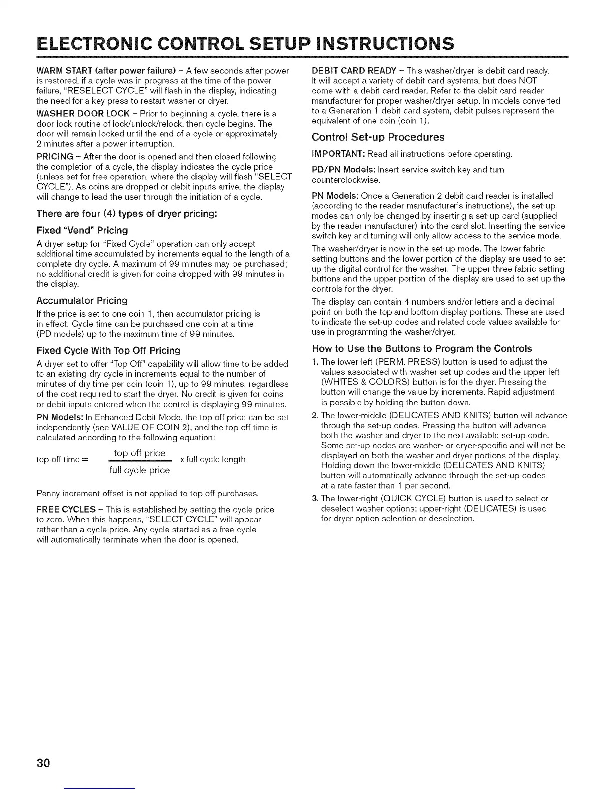complete dry cycle. A maximum of 99 minutes may be purchased;