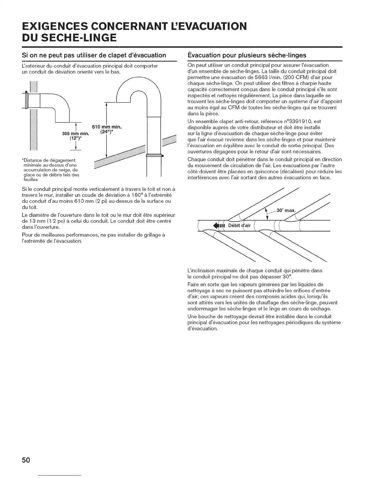 du conduit d'au moins 610 mm (2 pi) au-dessus de la surface ou