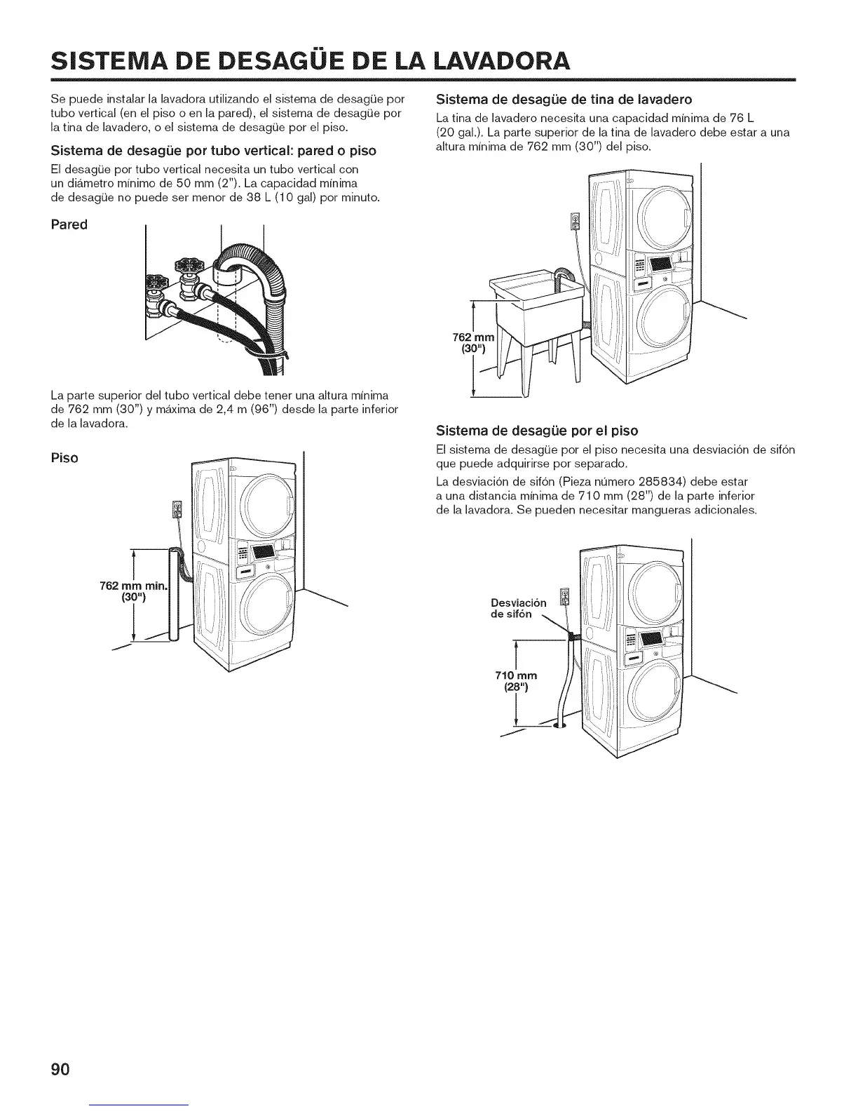 de la lavadora. Se pueden necesitar mangueras adicionales.