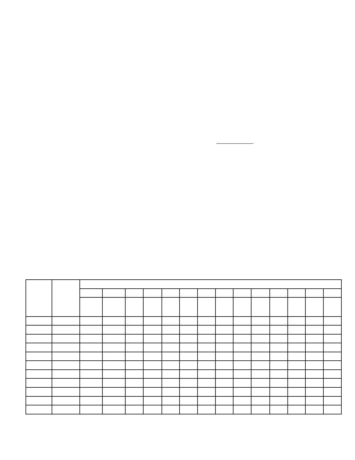 The numbers in the body of the chart are