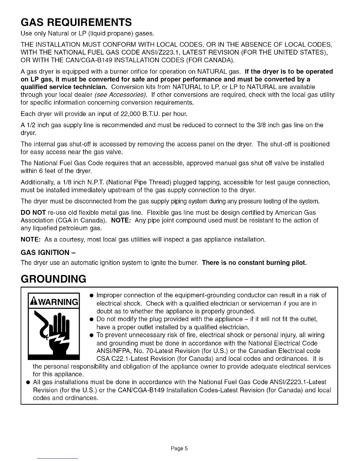 Revision (for the U.S.) or the CAN/CGA-B149 Installation Codes-Latest Revision (for Canada) and local