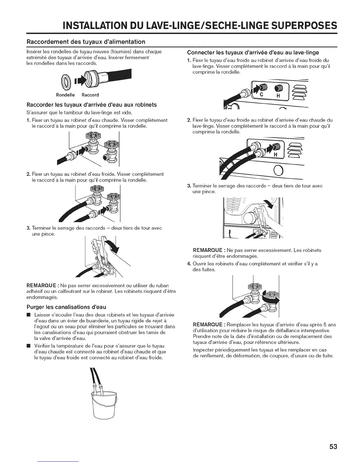 REMARQUE : Remplacer les tuyaux d'arr[vee d'eau apres 5 ans