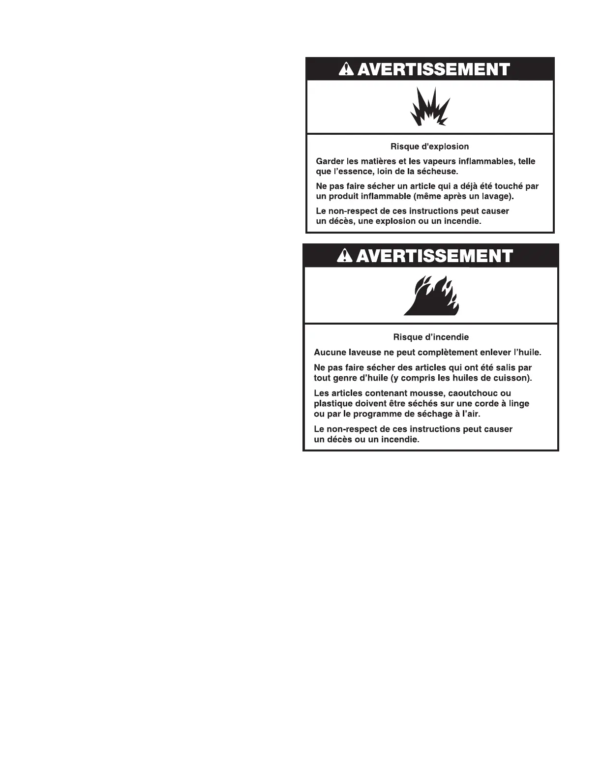 « ATTENTION » et « MODE D’EMPLOI » xées à la sécheuse.