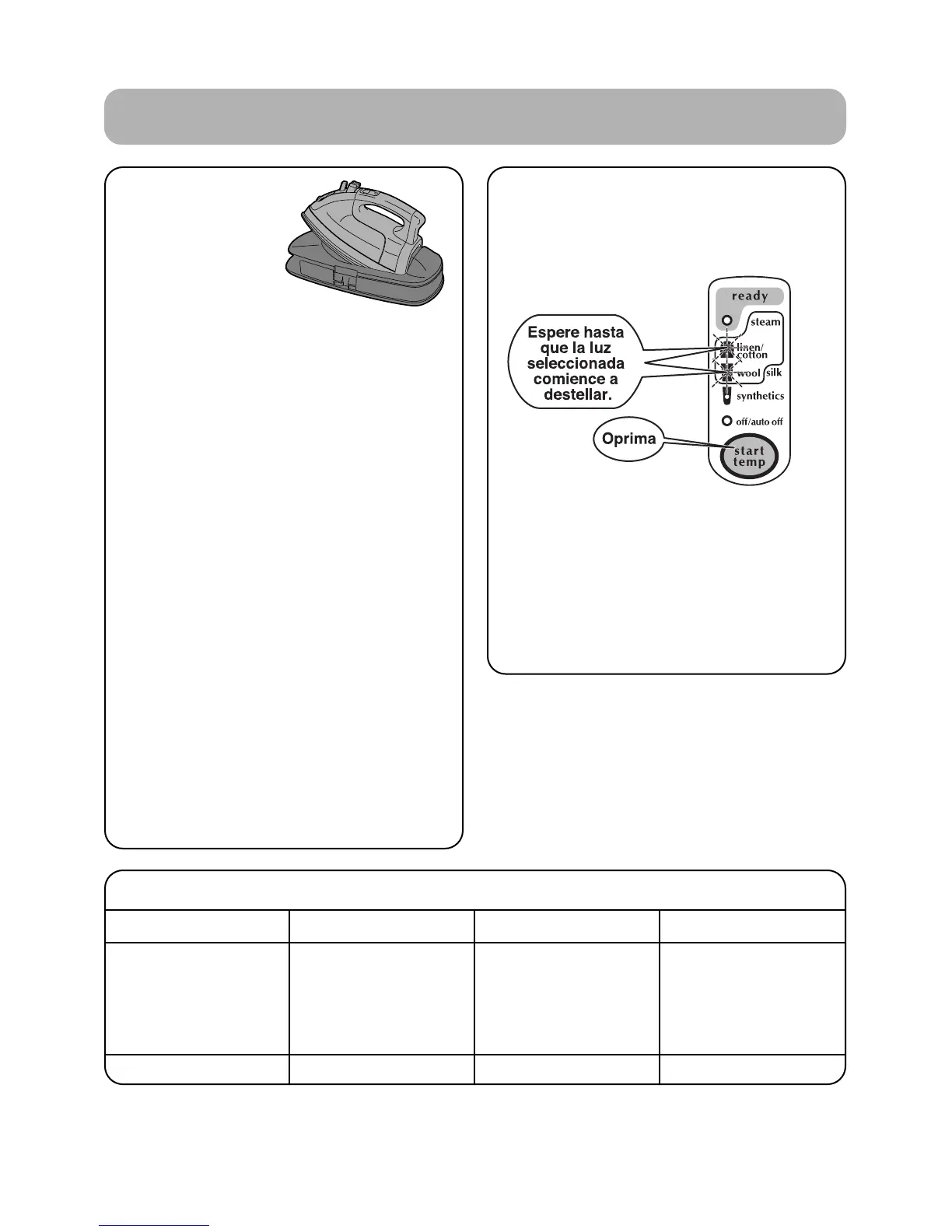 Nota: Cuando planche terciopelo, use vapor pero no deje que la plancha toque la tela. Pruebe en una