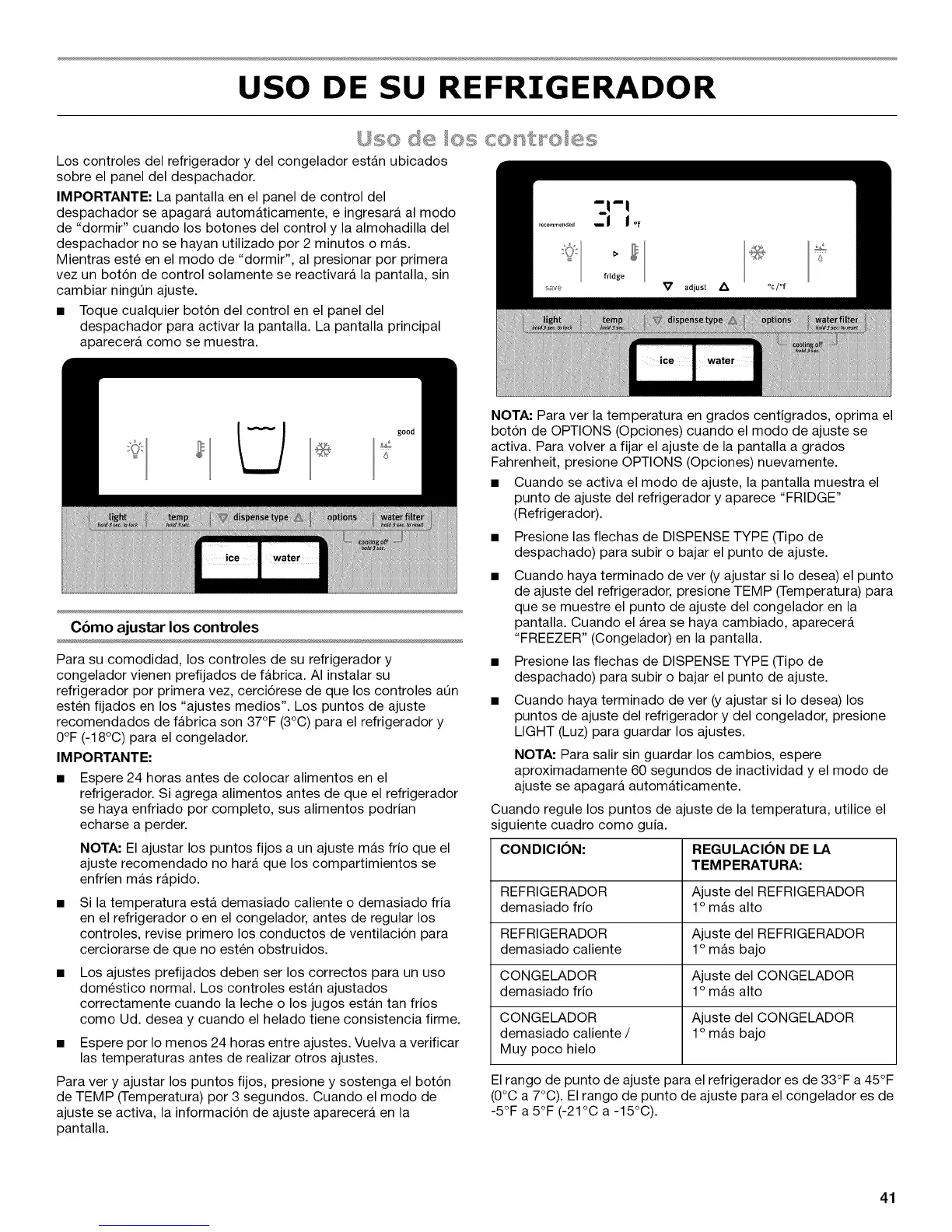 refrigerador por primera vez, cerciorese de que los controles aQn