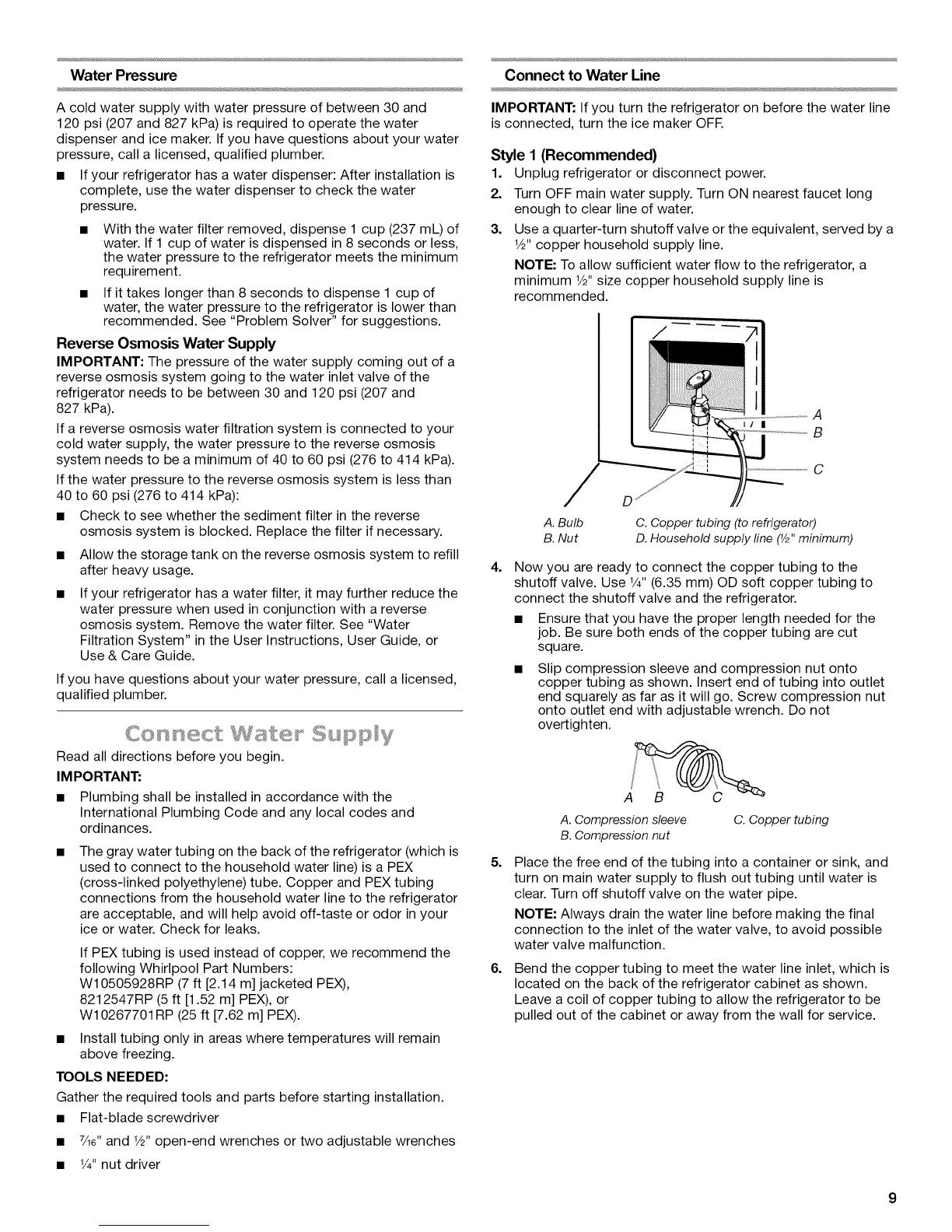 NOTE: To allow sufficient water flow to the refrigerator, a