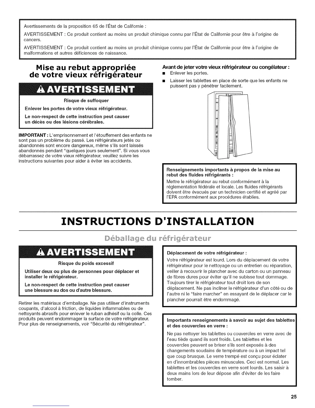 deplacement. Ne pas incliner le refrigerateur d'un c6te ou de