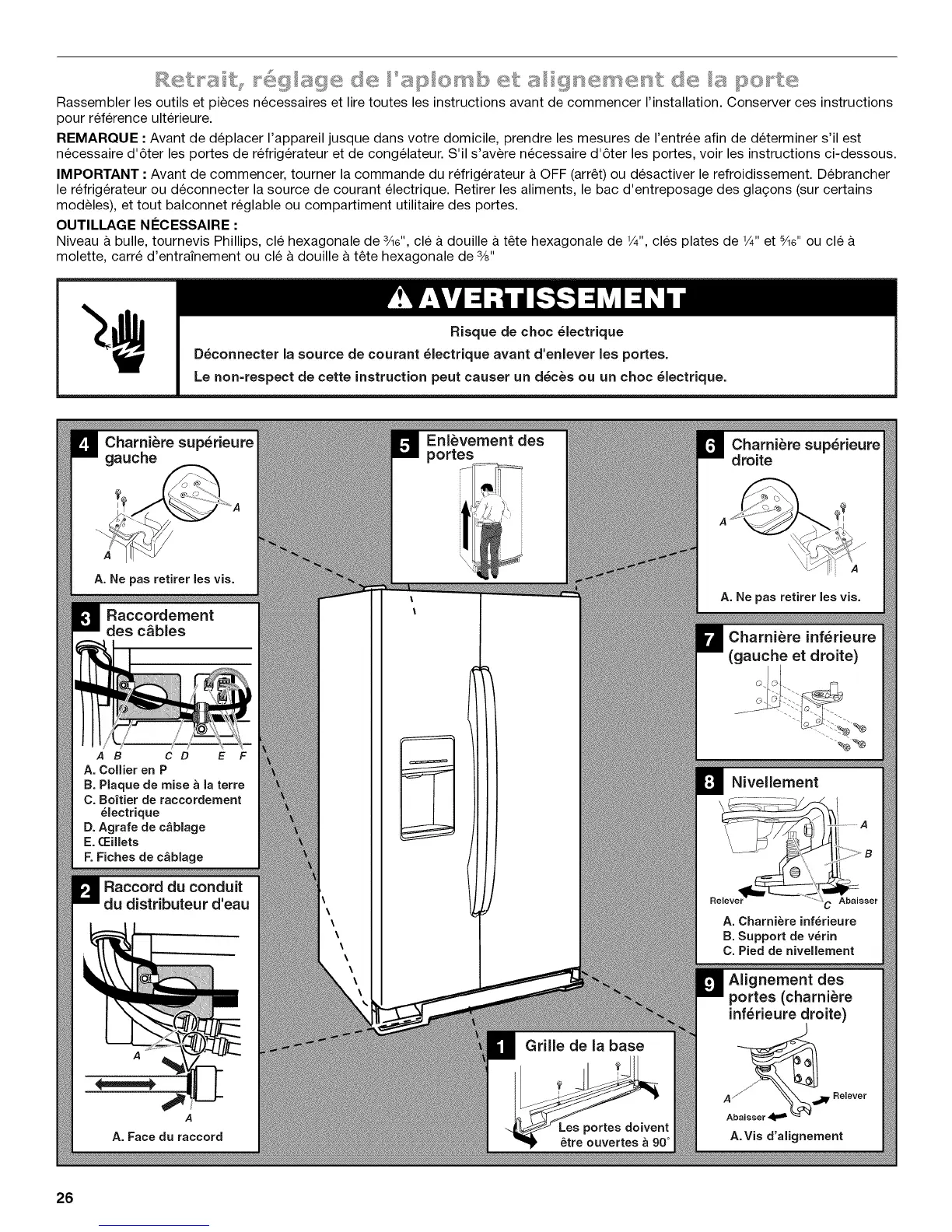 D_connecter la source de courant _lectrique avant d'enlever les portes.
