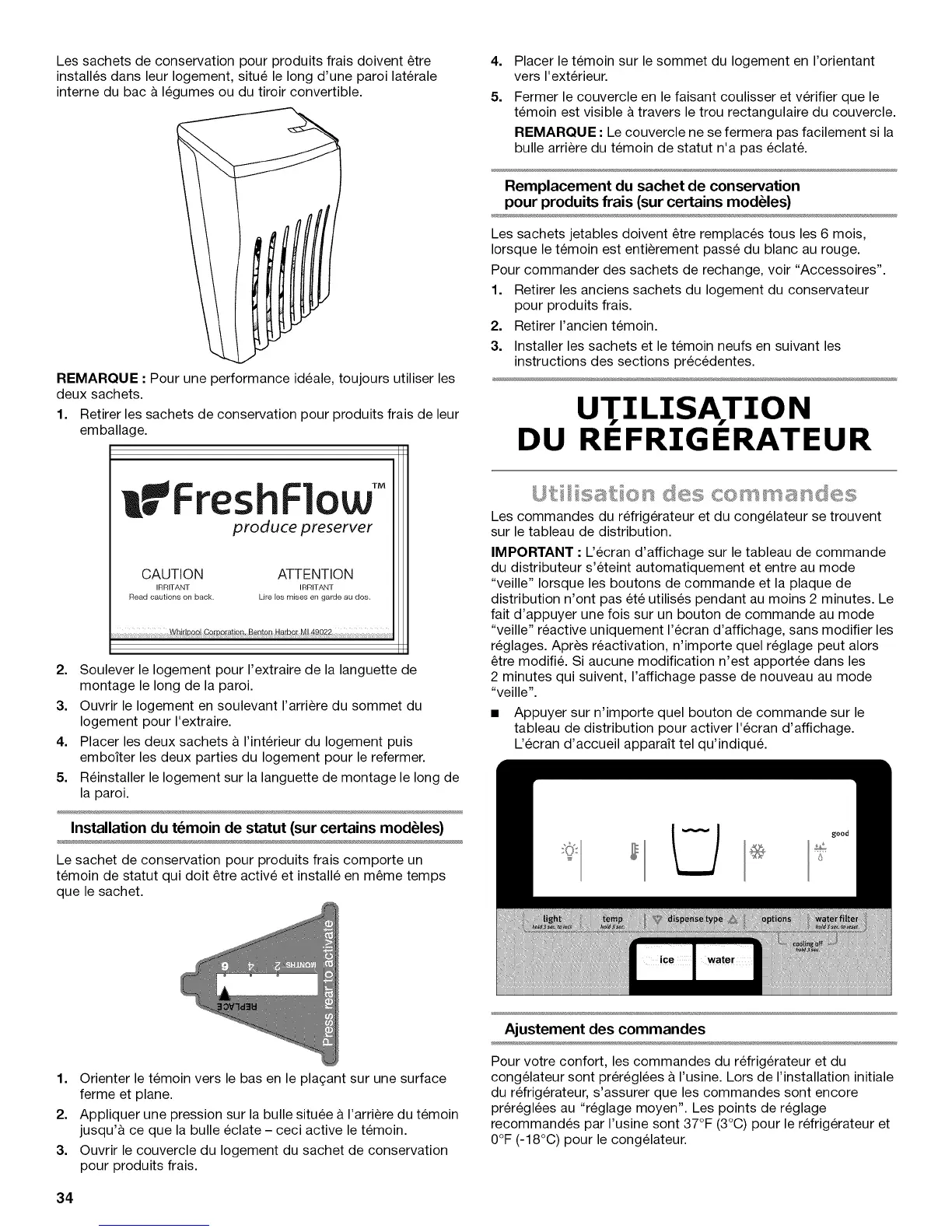 congelateur sont prereglees a I'usine. Lors de I'installation initiale
