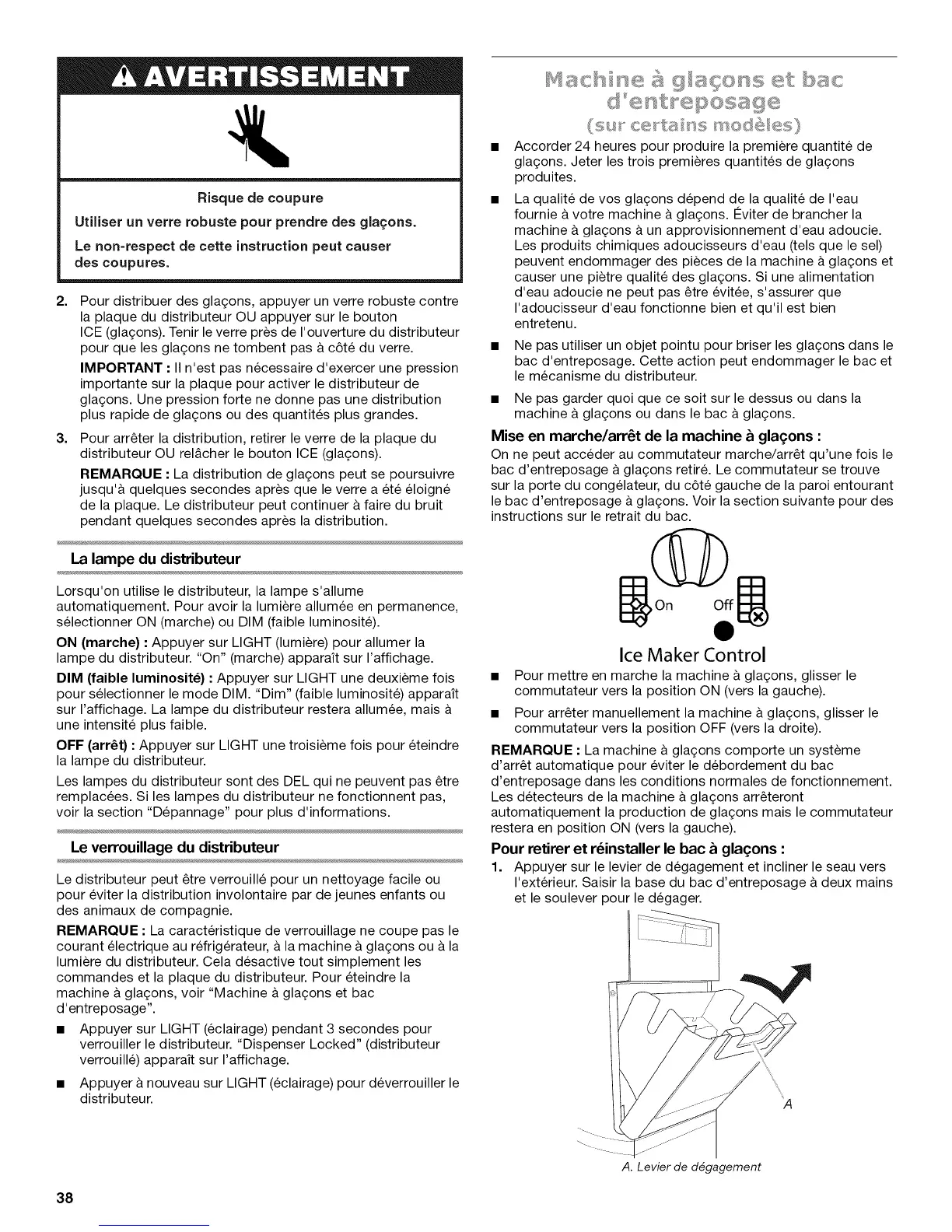 Pour retirer et r_installer le bac _ gla<;ons :
