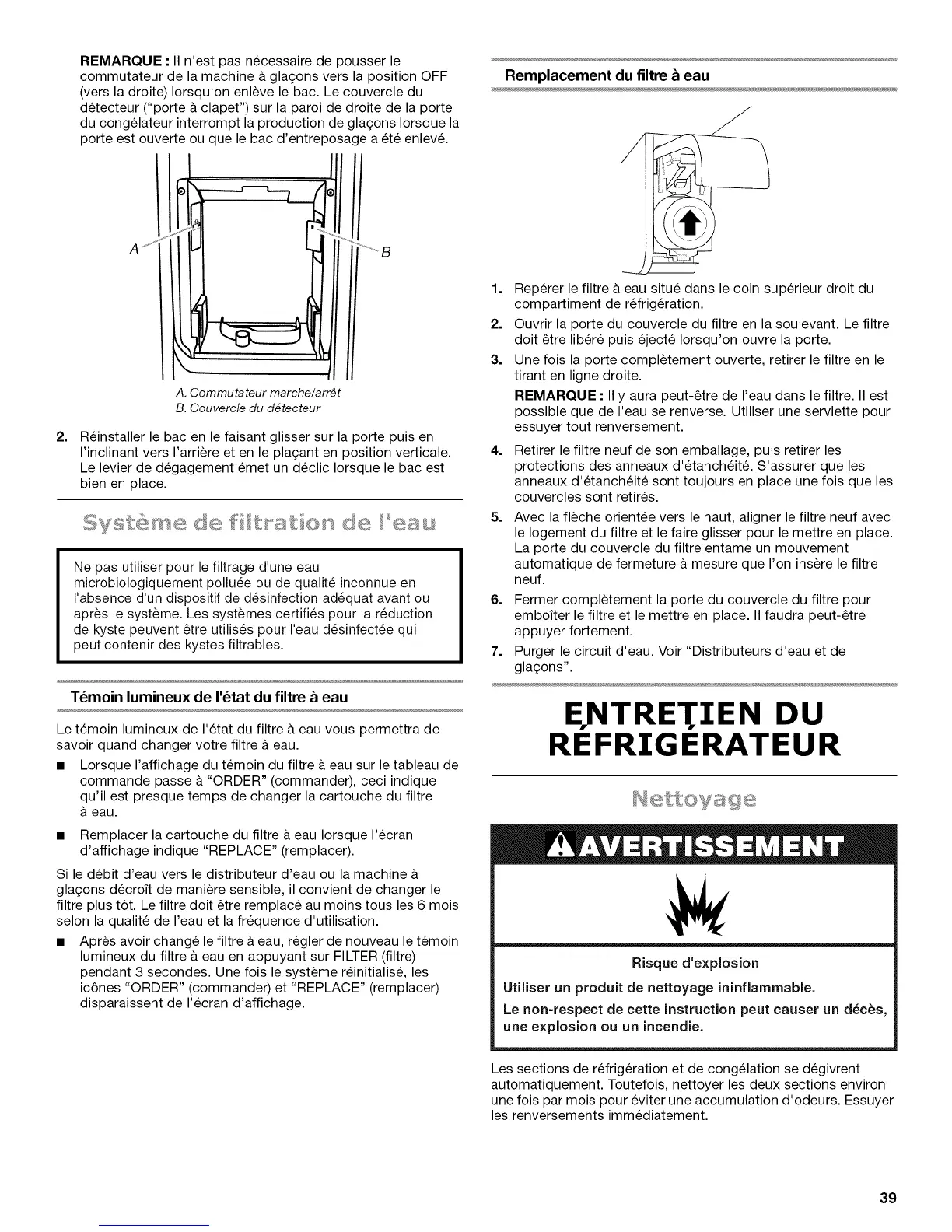 • Remplacer la cartouche du filtre & eau Iorsque I'ecran
