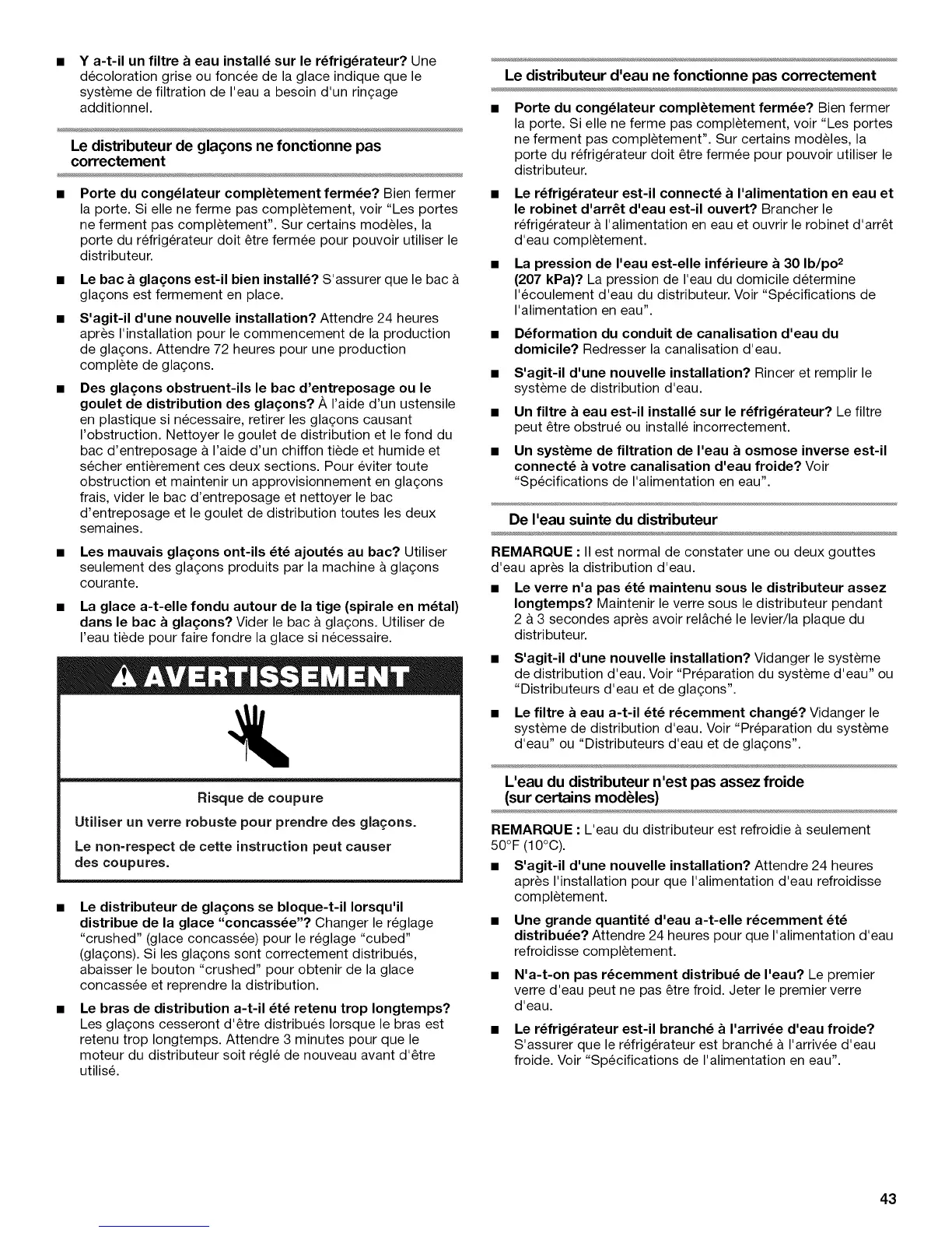 d'eau" ou "Distributeurs d'eau et de gla£;ons".