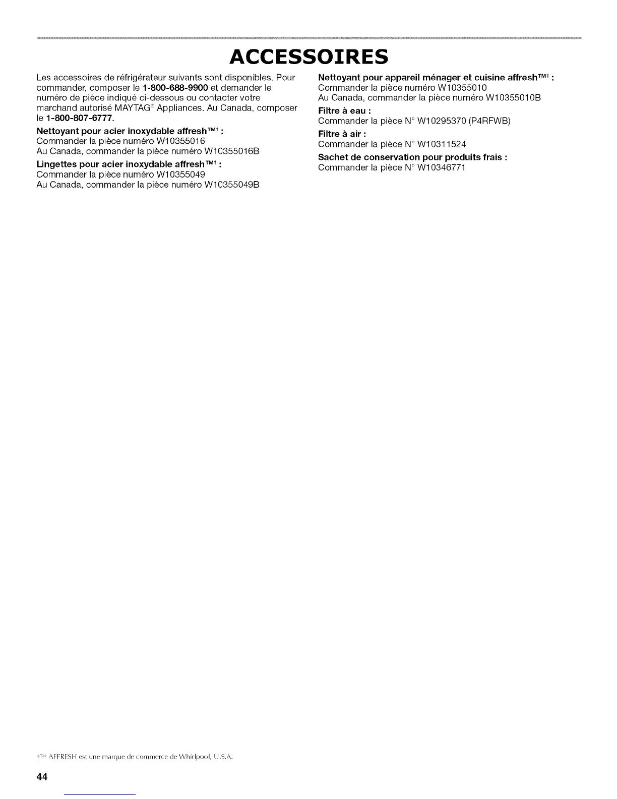 t- r'_ AFFRESH est une marque de commerce de Whirlpool, U.S.A.