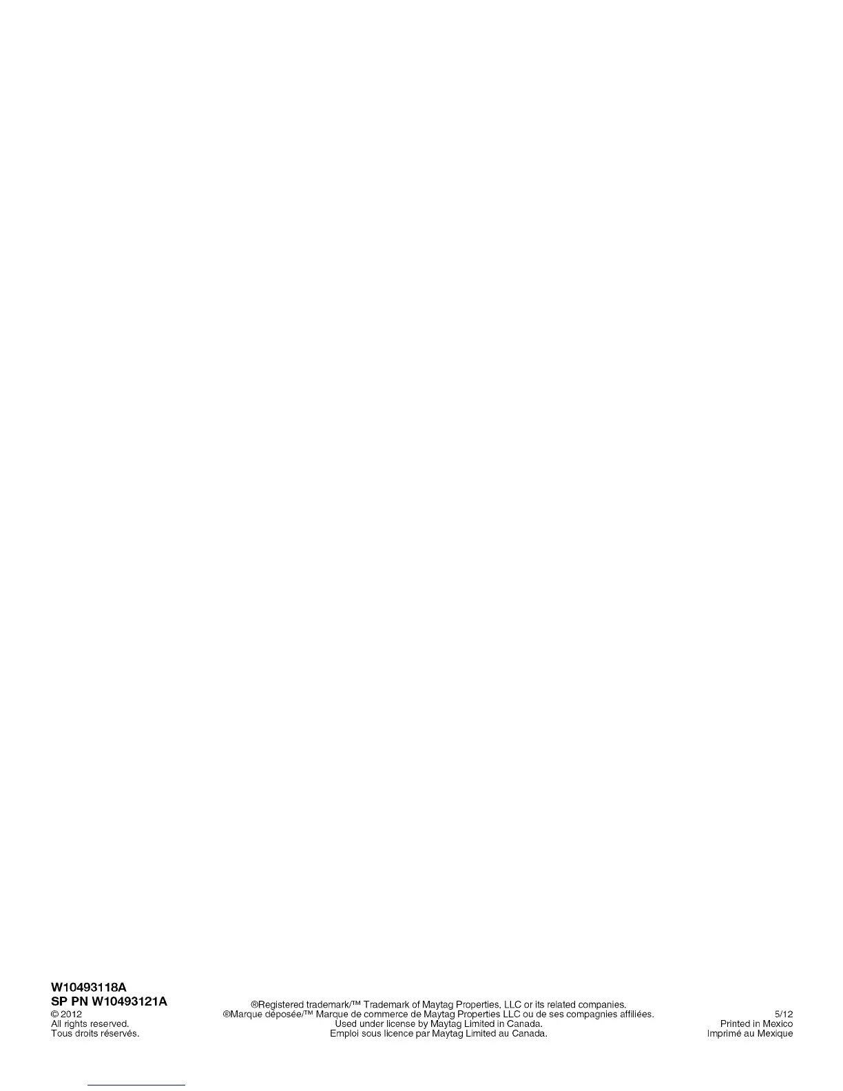 ®Registered trademarkf TM Trademark of Maytag Properties, LLC or its related companies.