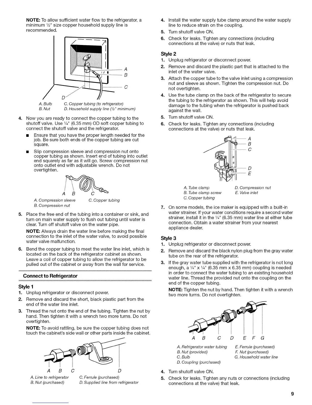 shutoff valve. Use 1/4"(6.35 mm) OD soft copper tubing to