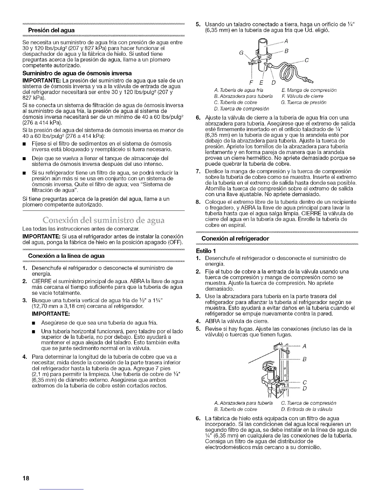 (6,35 mm) en la tuberia de agua fria que Ud. eligi6.
