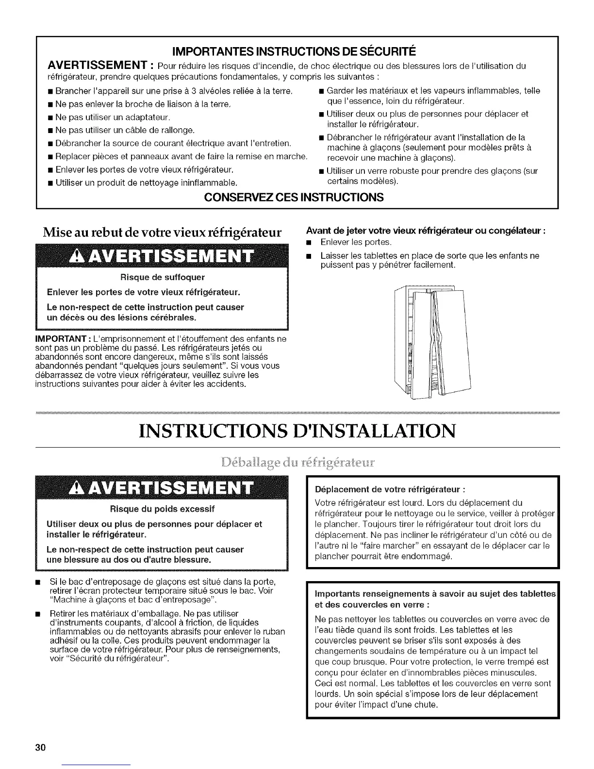 deplacement. Ne pas incliner le refrigerateur d'un c6te ou de