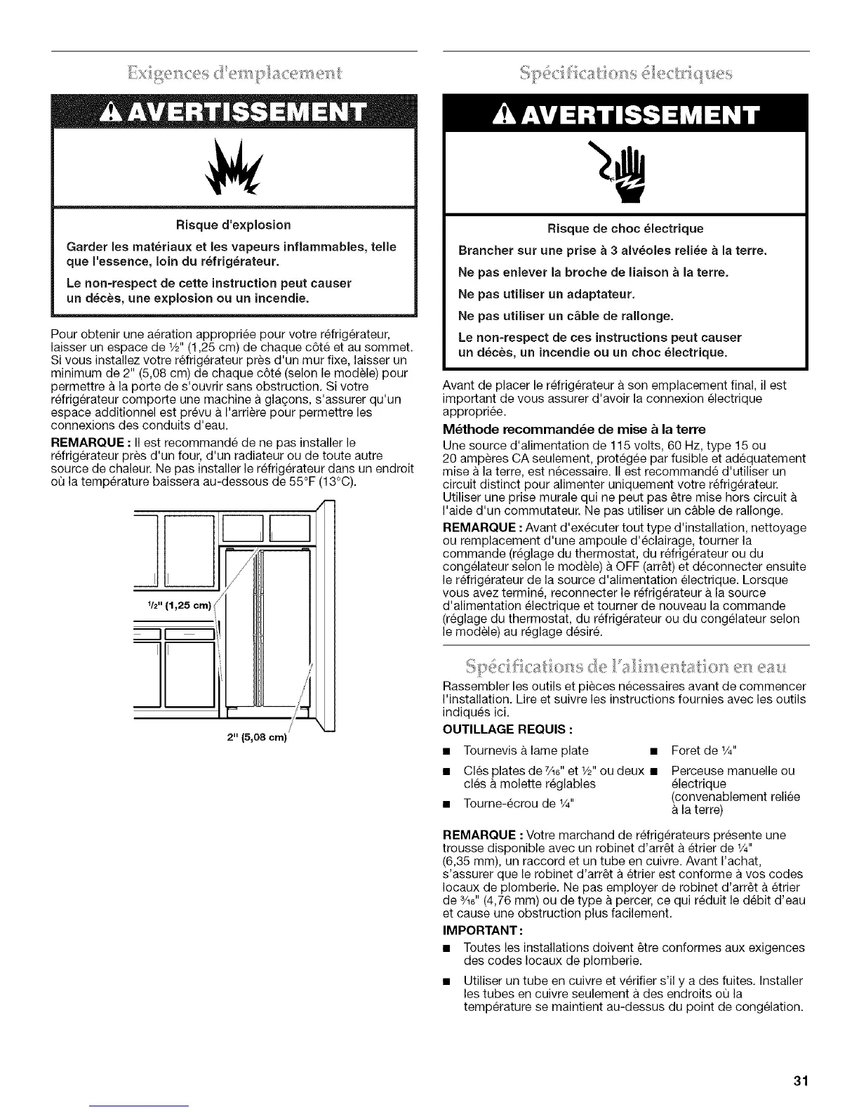 Pour obtenir une aeration appropriee pour votre refrigerateur,