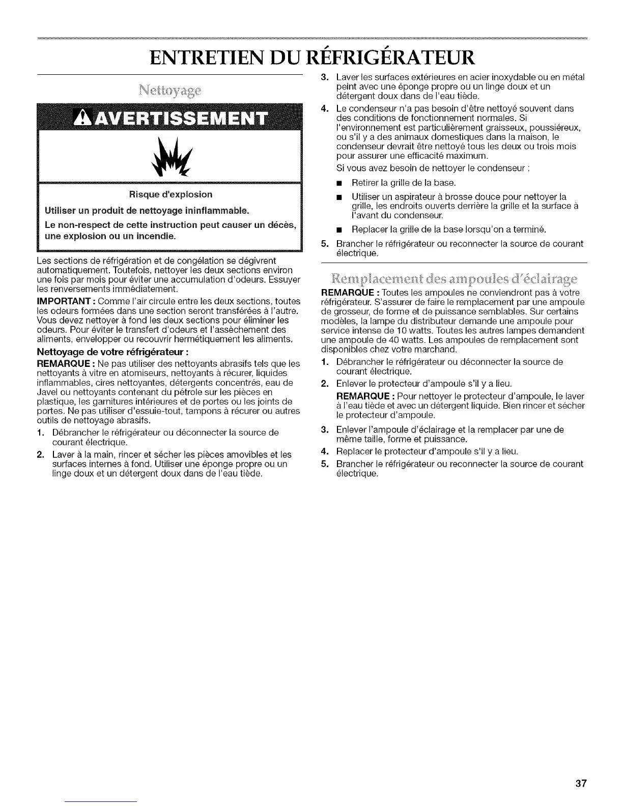 r6frigerateur. S'assurer de faire le remplacement par une ampoule