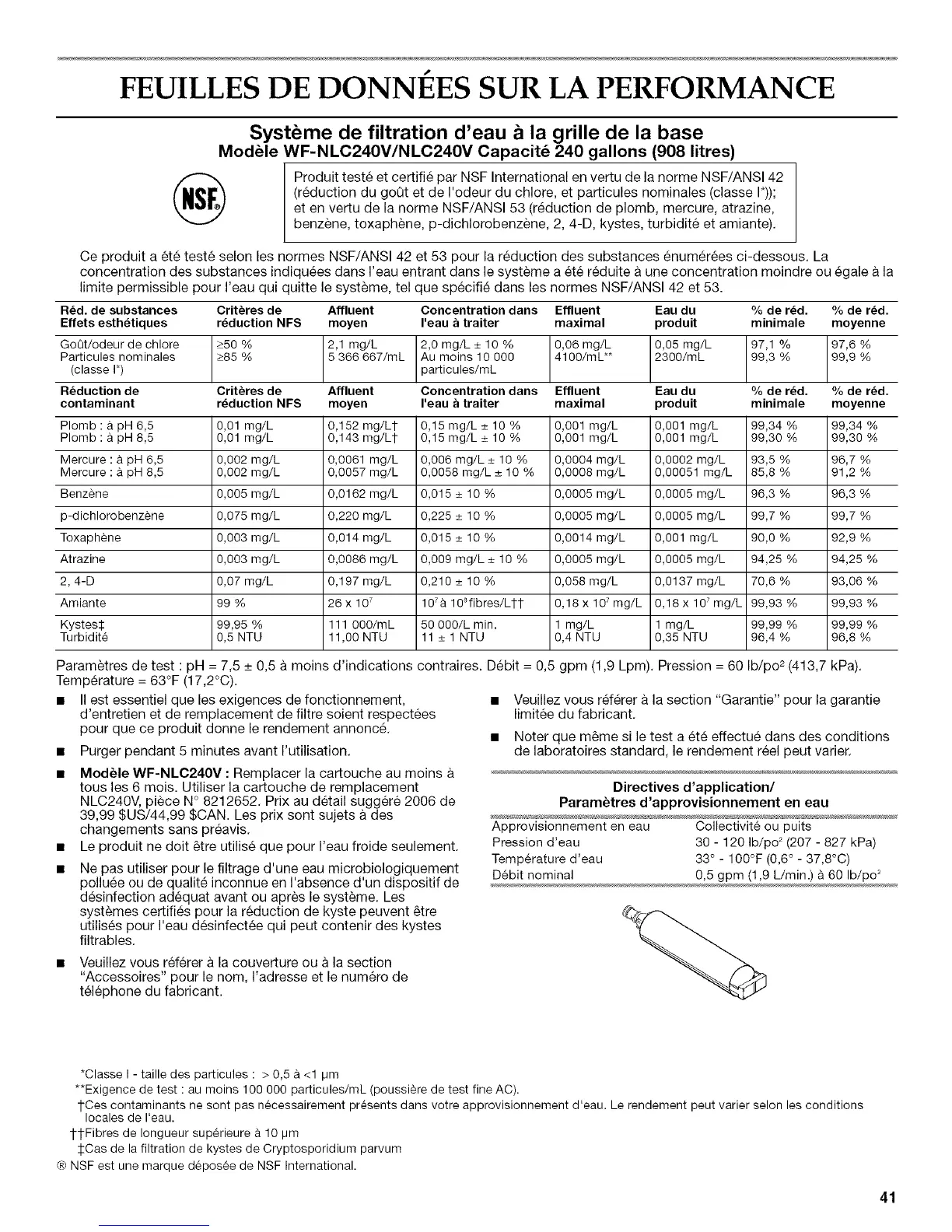 et en vertu de la norme NSF/ANSl 53 (reduction de plomb, mercure, atrazine,
