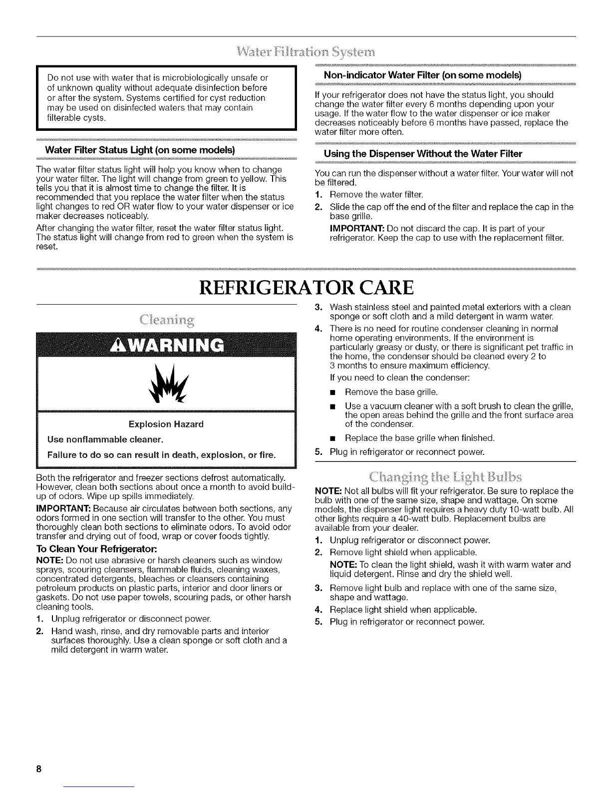 models, the dispenser light requires a heavy duty 10-watt bulb. All