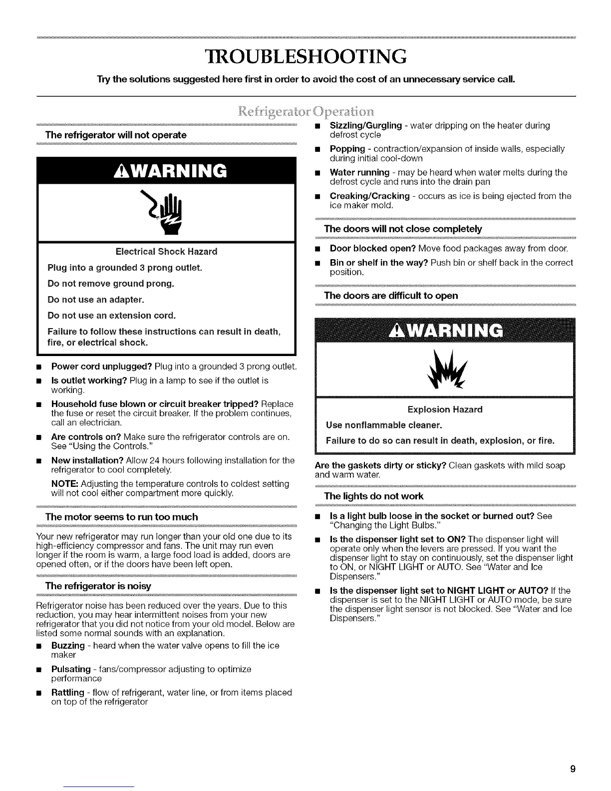 • Is the dispenser light set to NIGHT LIGHT or AUTO? If the