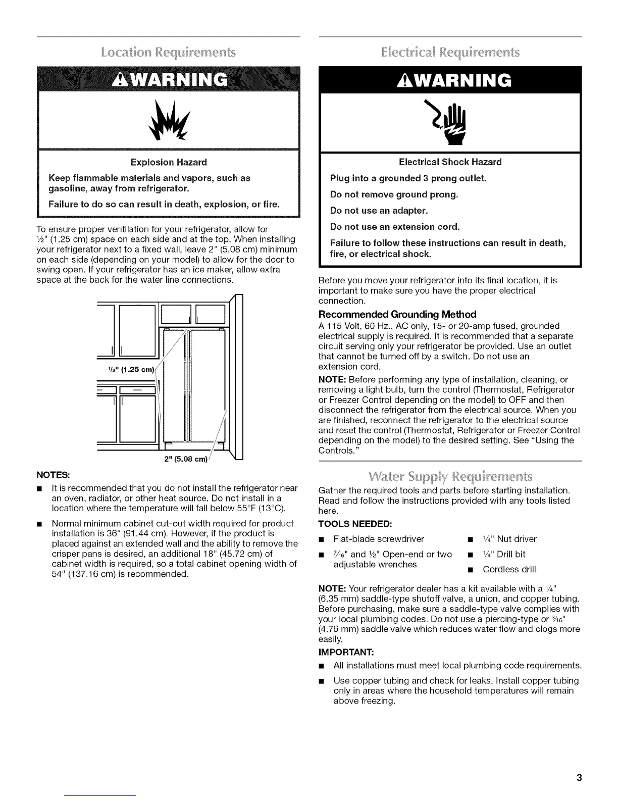 your refrigerator next to a fixed wall, leave 2" (5.08 cm) minimum