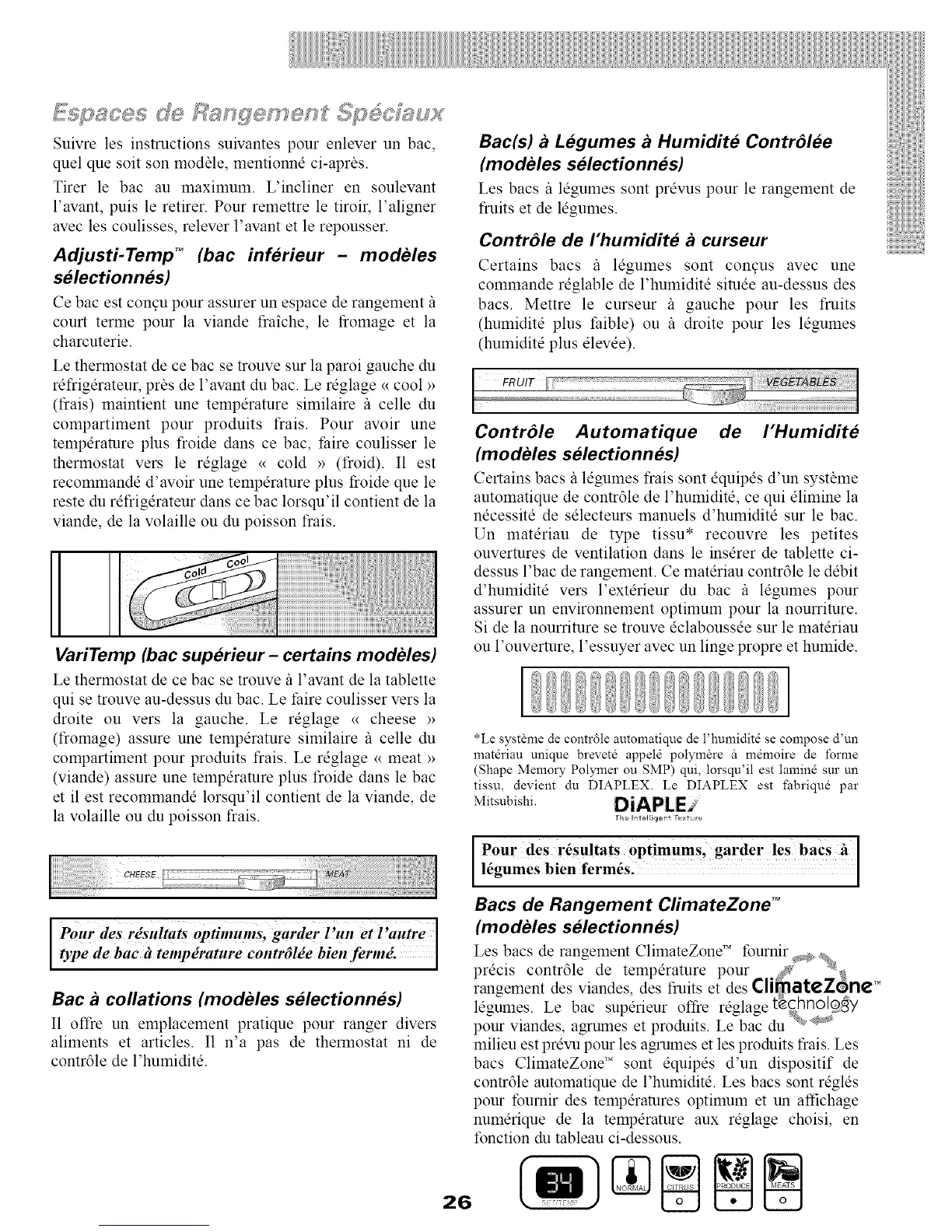 milieu est prevu pour les agrumes et les produits frais. Les