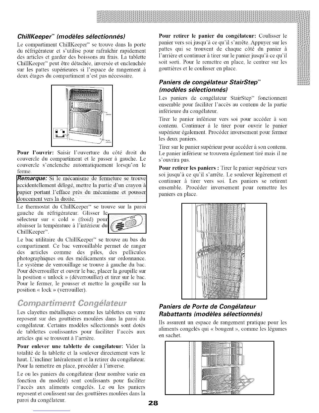 Pour retirer le panier du cong_lateur: Coulisser le